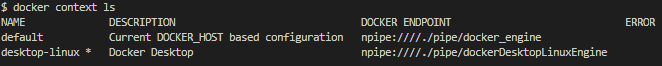 - docker context ls 결과를 바탕으로, 활성화된 desktop-linux 컨텍스트가 오류의 원인임을 인지했습니다.