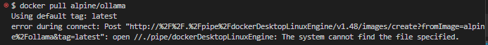 증상: docker run 명령어로 Ollama 컨테이너 실행 시 이미지 관련 오류 발생.